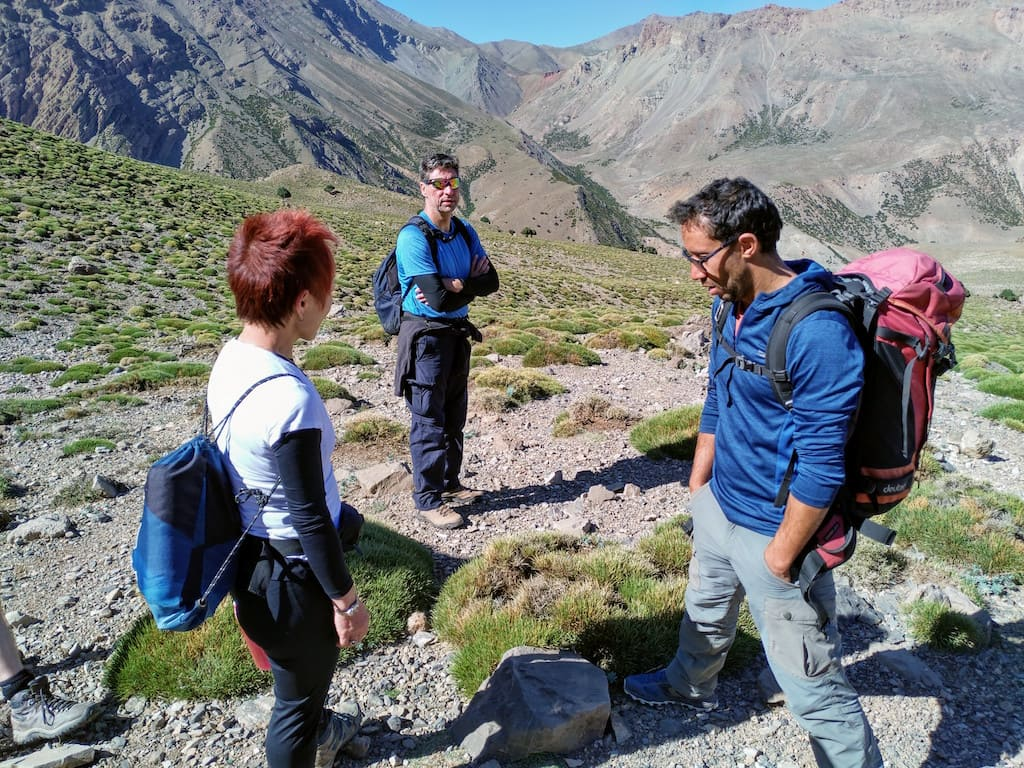 Start your morning by walking down a zigzag trail via some waterfalls and a great rock formation. We will be passing through some Berber villages including Agrd and Tizi n Ouarge, and a nice afternoon walk up to the green pasture and Tizi n Aghri for the night in tents.